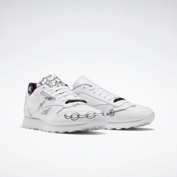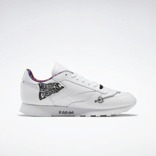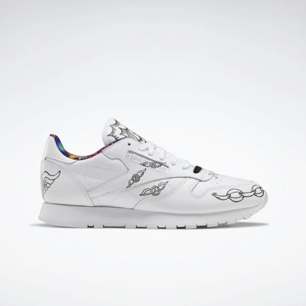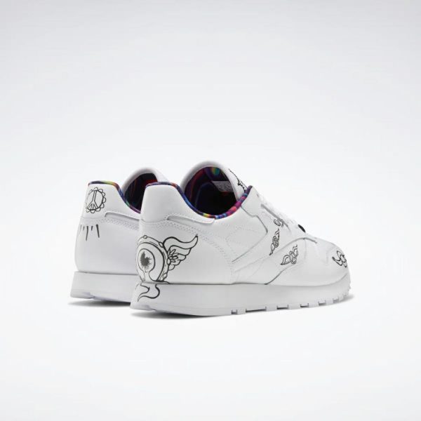 Bring the world together. A spirit of peace and unity inspire the design of these Classic Leather shoes. Illustrated graphics give them a fresh look. A multicolor lining adds pop. A smooth leather upper feels soft and flexible.