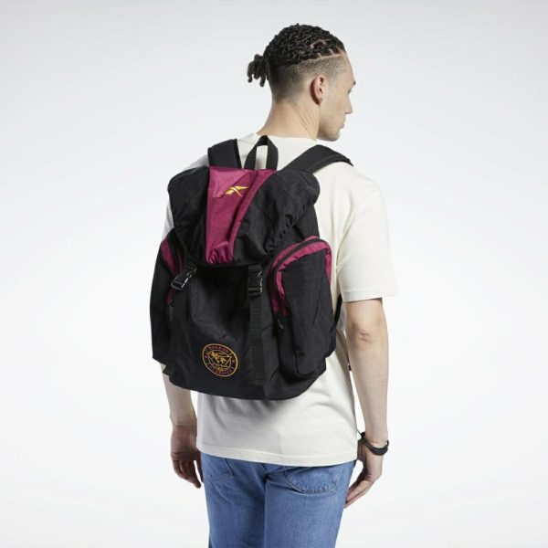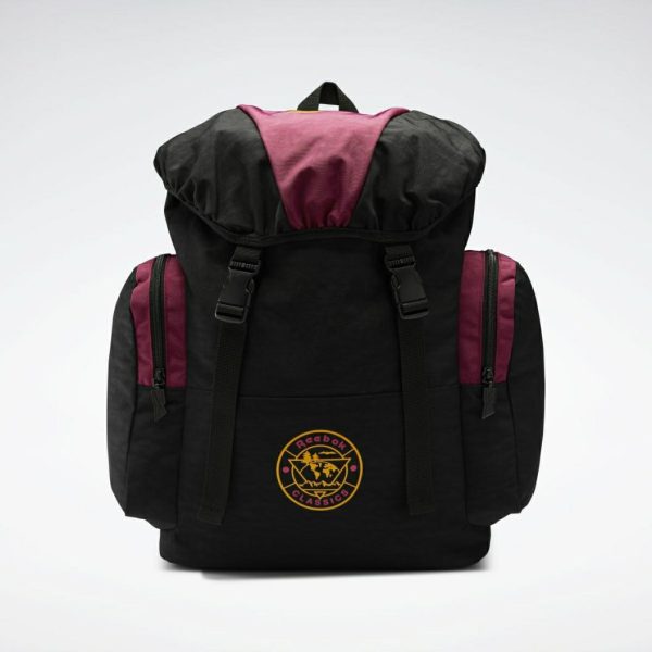 Get into a camping state of mind. Hit the open trail (or just roast marshmallows over the backyard fire pit) with this Reebok backpack. An outdoor-inspired crest and utilitarian details give you a look that’s ready for adventure. S’mores not included (but encouraged).[REE]CYCLED: Made with at least 30% recycled materials; Zero virgin polyester
