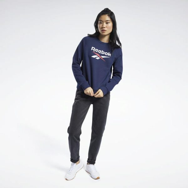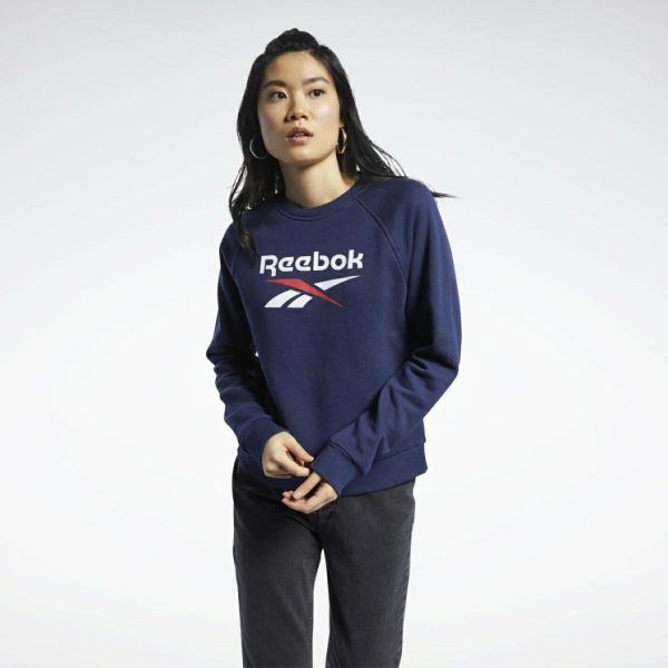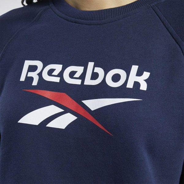Loud and proud sporty style. A contrast Vector logo pulled from the archives gives this women’s sweatshirt a legit Reebok look. A solid color background keeps it simple.