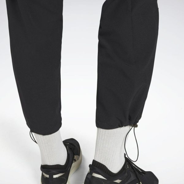 Turn to these women’s Reebok woven pants when you want everyday wear that’s functional and fun. An elastic waistband lets you create the perfect fit without fuss. Adjustable bungee cuffs look great over sandals or stylin’ sneaks. Stuffable side pockets let you spend the whole day away without packing a purse.