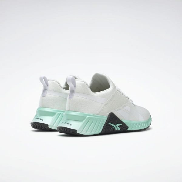 Just keep moving. These women’s Reebok training shoes help you keep pace with high-intensity workouts. The durable upper has a bootie design that gives you a locked-in fit for secure movement in all directions. A lightweight FLASHFILM鈩?midsole has a wrap at the midfoot for added stability.