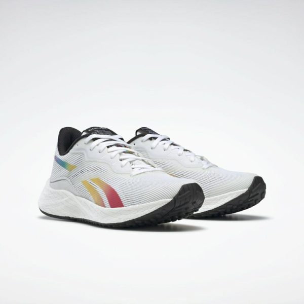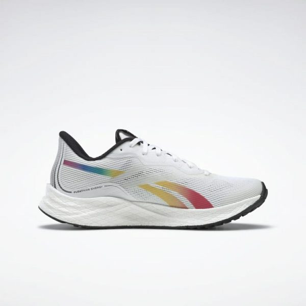 Introducing the women’s Floatride Energy 3 Pride shoes. If the shoes make the person, it’s time to lace up and head out on your run with Pride. The square knit upper ensures breathable comfort, and the Floatride Energy midsole offers lightweight, responsive cushioning to help you push forward with confidence.