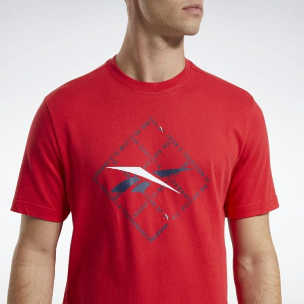 Upgrade your sporty wardrobe. A grid diamond made up of words gives this men’s t-shirt a fresh look. A contrast Vector pulled from the archives keeps it rooted in sport. Soft all-cotton jersey makes it feel lived-in fresh from the box.