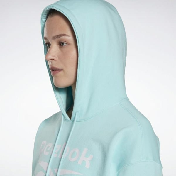 Iconic style meets cozy comfort. This women’s hoodie is made from soft cotton-blend French terry. The oversize fit lets you layer it over your favorite tee. A kangaroo pocket keeps hands warm. A large logo amplifies your Reebok pride.