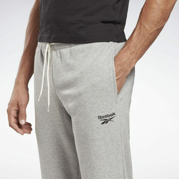 Keep your look sporty on rest day. Cotton-blend French terry makes these men’s pants pajama-comfy. The hand pockets come in handy when you’re out and about. An embroidered Reebok logo is a subtle callout.