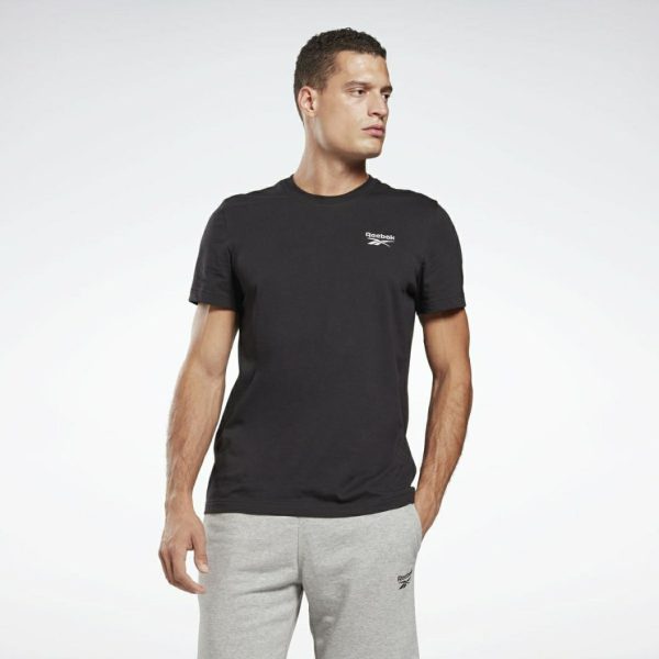 Keep the sporty look going outside of the gym. This men’s cotton t-shirt feels soft and comfortable all day long. A Vector logo on the chest nods to Reebok heritage.