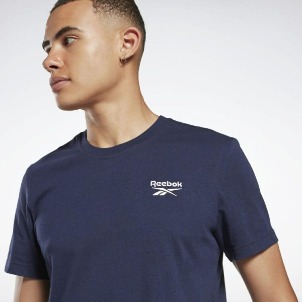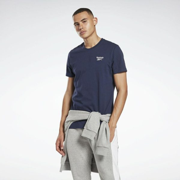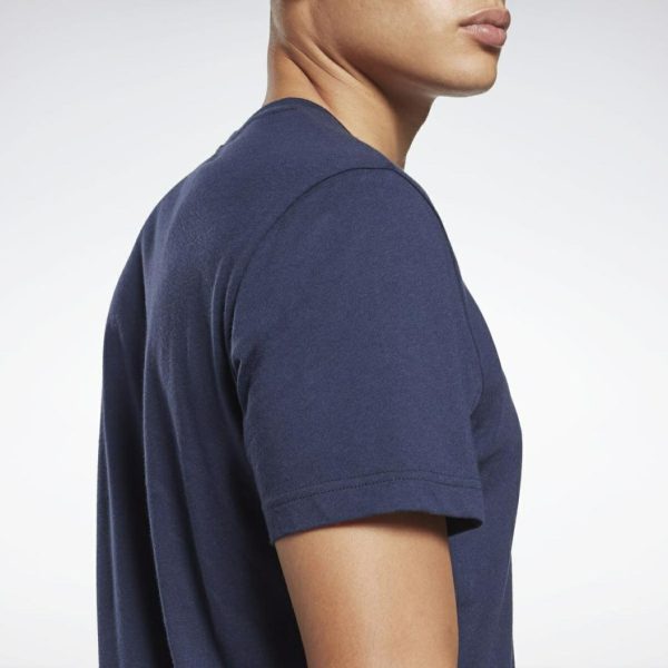 Keep the sporty look going outside of the gym. This men’s cotton t-shirt feels soft and comfortable all day long. A Vector logo on the chest nods to Reebok heritage.