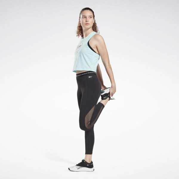 Be a part of the Reebok fitness club. The cropped cut of this women’s tank top pairs well with high-waisted tights and your favorite workout. Its made with recycled materials and wicks sweat for dry comfort through training sessions, short and long.