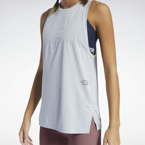 Boost your cardio fitness in an RPM鈩?spin class. Wear this women’s LES MILLS knit tank top when you do. Reebok’s ACTIVCHILL Vent tech makes the top super-breathable. Speedwick moisture-wicking tech won’t let sweat settle on you body. A placed perforated LES MILLS graphic on the back says you’re part of the pack.