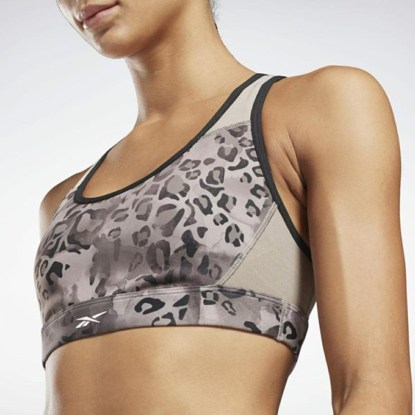 Modern Safari Lux Racer Padded Medium-Impact Sports Bra Grey | Womens Reebok Sports Bras