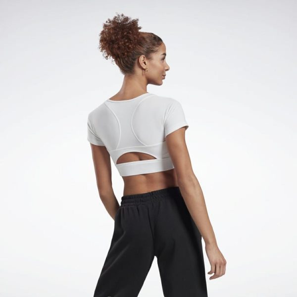 Get a layered look without the layers. This Reebok bralette has a short sleeve, cropped silhouette for a unique look. It’s made of stretchy fabric with internal structure for support during your workout. A back cutout lets you make a stylish exit.