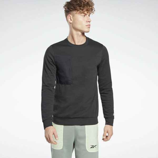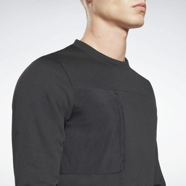 Just because a sweatshirt is comfortable doesn’t mean it can’t be sleek and stylish. Elevate your sporty outfits with this men’s Reebok sweatshirt. It’s made of knit fabric and cut slim for the sophisticated look of a sweater. A woven overlay on the chest pocket is inspired by outdoor gear.