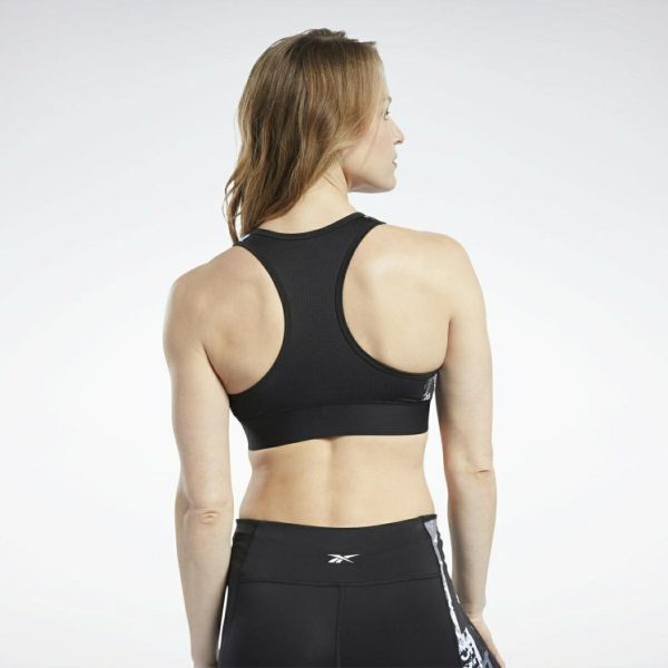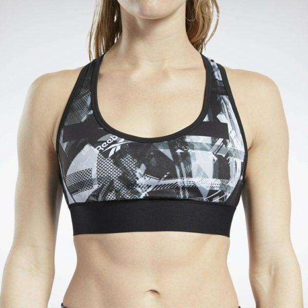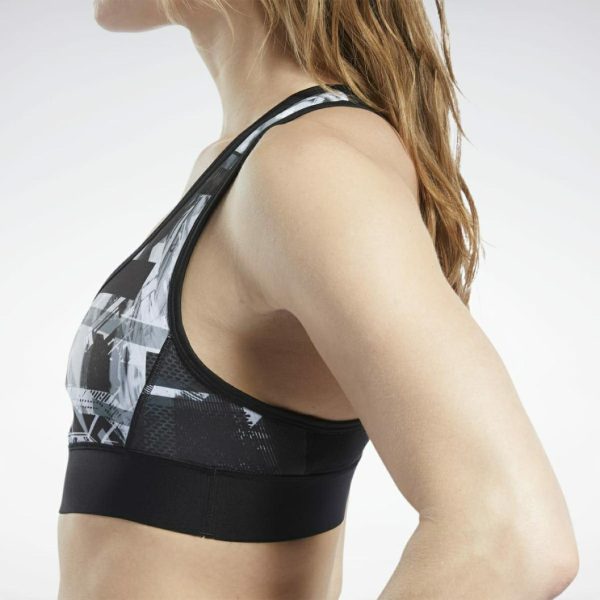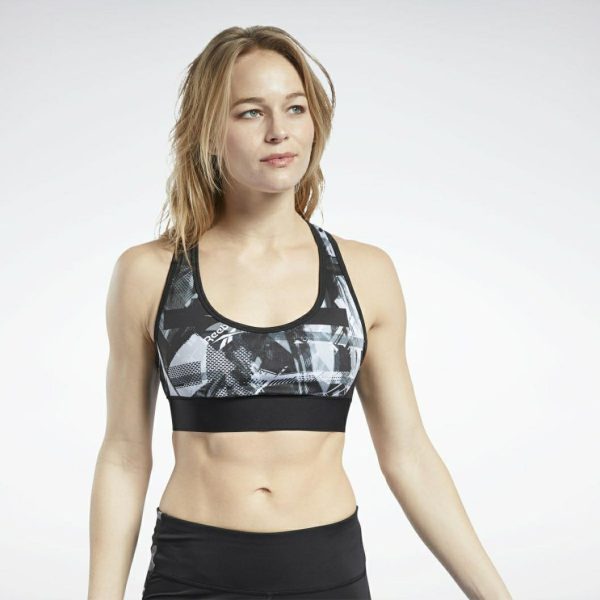 Work up a sweat in this light-support sports bra. The wide band and fitted fit keep you comfortable throughout your workout. Speedwick fabric helps you stay dry, and an allover graphic adds extra style.