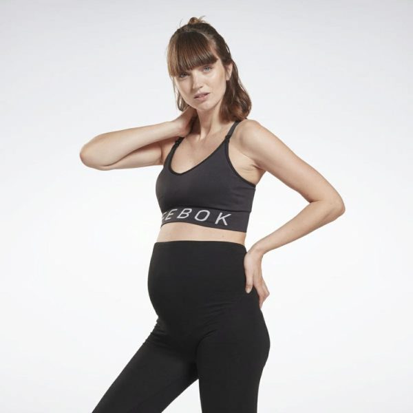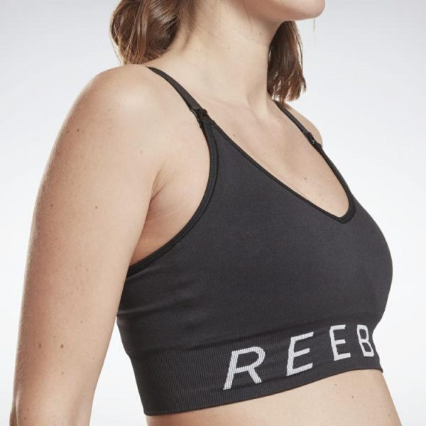 This maternity bra keeps you dry and comfortable through circuit training, weekend hikes and other medium-impact workouts. The stretchy, seamless design feels smooth against your skin. It includes easy-release clips and removable pads.