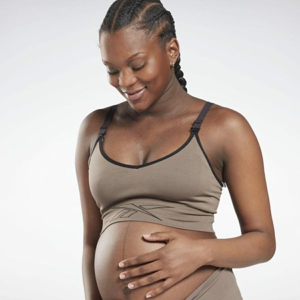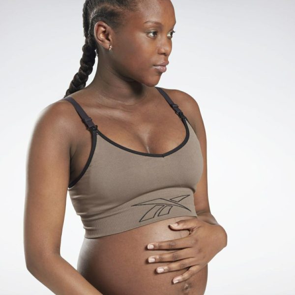 This maternity bra keeps you dry and comfortable through circuit training, weekend hikes and other medium-impact workouts. The stretchy, seamless design feels smooth against your skin. It includes easy-release clips for nursing, adjustable straps, and removable pads.