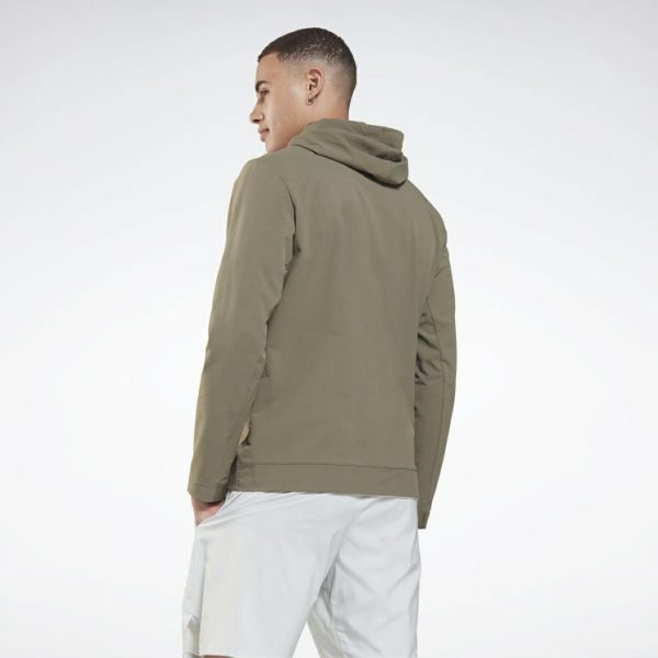 A little cool weather isn’t going to stop you from getting outside. Perfect for lightweight layering, this men’s Reebok hoodie has lots of stretch so you can move with freedom. It’s water-resistant to offer protection and help keep you dry as you move through the day.
