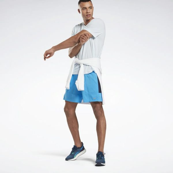 Hit the ground running in these men’s shorts. They wick away sweat with Speedwick fabric and have a drawcord at the elastic waist to keep you extra comfortable while you work out. There’s a stash pocket in the inner brief for a key or card, so you’re never without your essentials. Reflective details shine in low light.