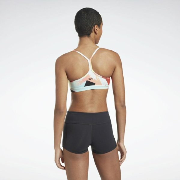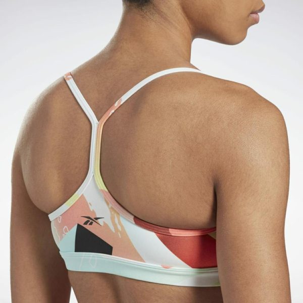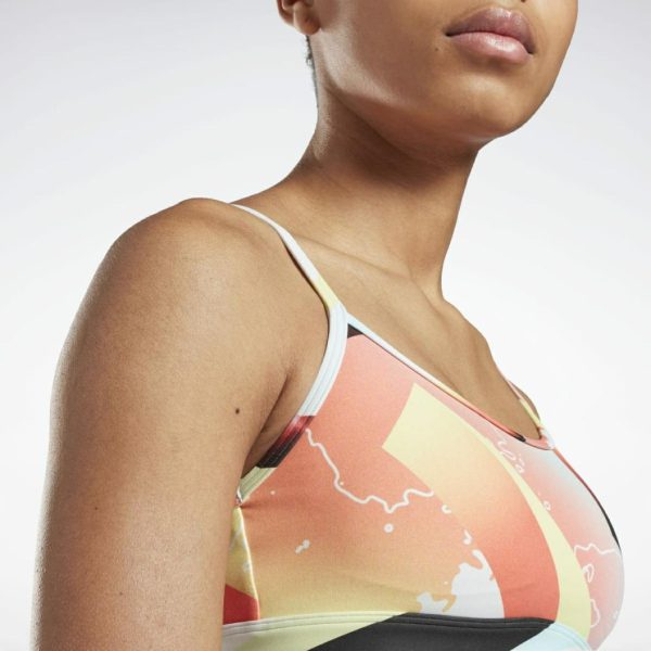 Go all out. Have the confidence to push the workout pace to the limit in this Reebok Skinny Bra. Speedwick tech wicks away sweat and keeps you comfortable and dry as you move. The bright allover print makes you a blur of beautiful color as you workout.
