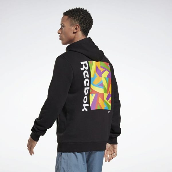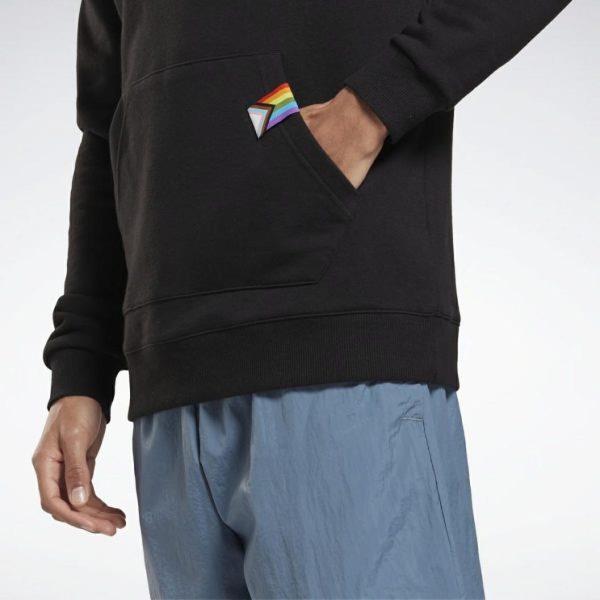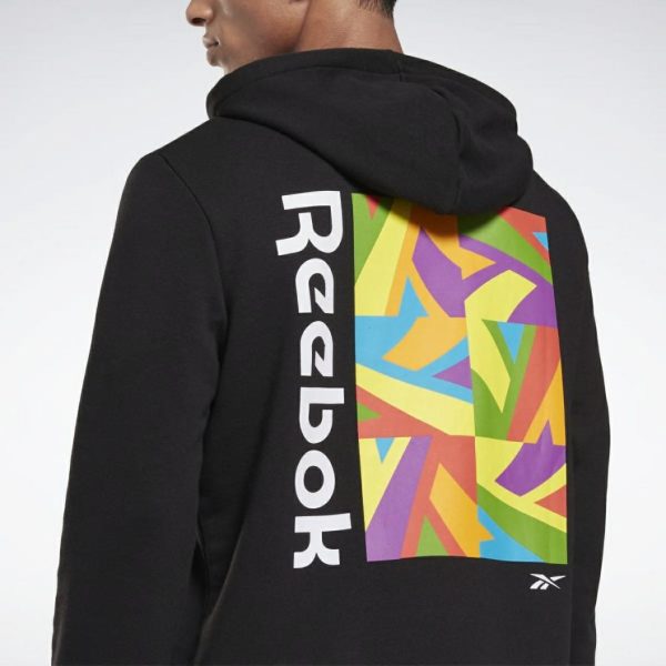For powerful performances everywhere. Gym to stage. Or track to parade. However you move, do it with Pride. This French terry Reebok hoodie will keep you wrapped in cozy comfort along the way. A big and bold Pride-inspired graphic pops on the back.[REE]CYCLED: Made with at least 30% recycled materials; Zero virgin polyester