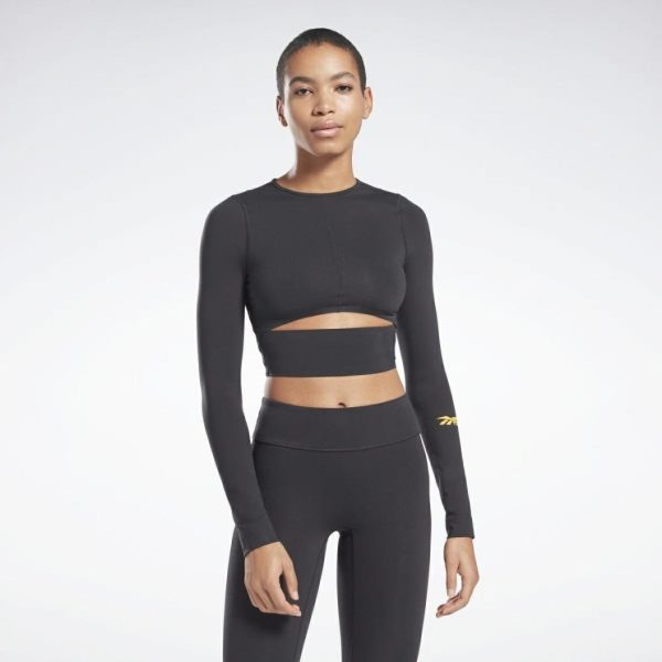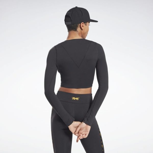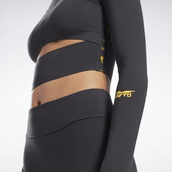 VB Logo Long Sleeve Crop Top Black | Womens Reebok T-Shirts & Graphic Tees