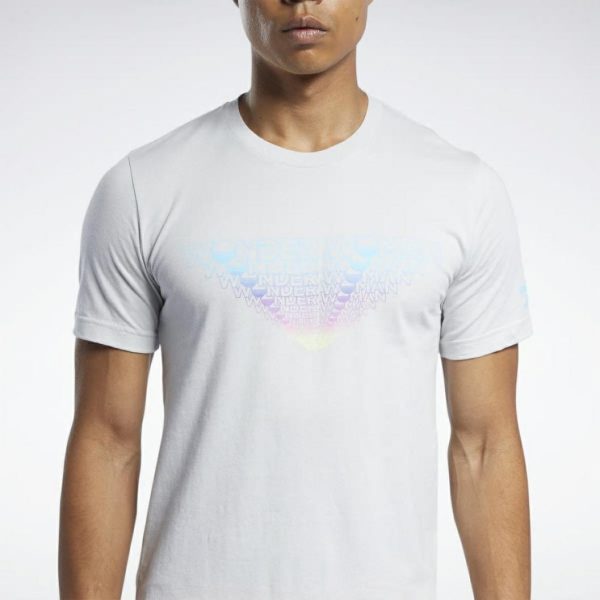 Superhuman style with an ’80s vibe. This men’s t-shirt is made of blended cotton jersey and feels soft against your skin. It features a subtle repeating Wonder Woman graphic on the chest.