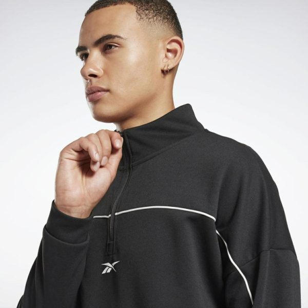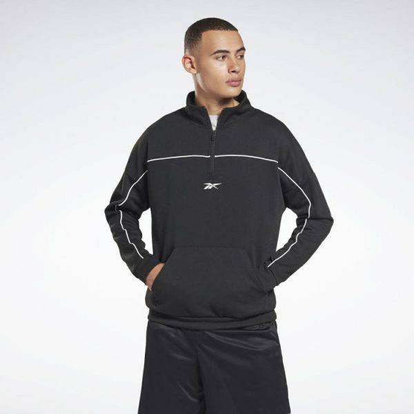Ride the exercise bike, then grab lunch. This men’s quarter-zip sweatshirt has a polished look that fits in anywhere. Comfortable knit fabric keeps you feeling good, and piping details give it a retro vibe.