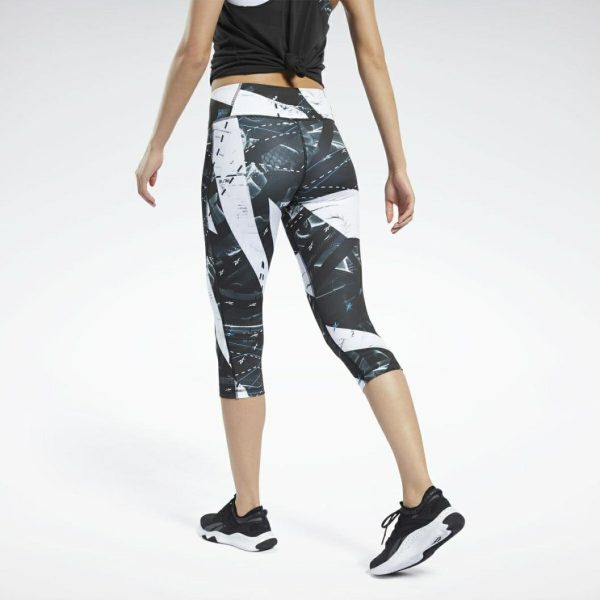 Slay on leg day. These women’s capri tights show off an eye-catching print to amp up your workout wardrobe. Sleek fabric absorbs moisture to keep you dry and cool when you turn up the heat on your training session. A wide waistband stays put so you can focus on your flexibility.
